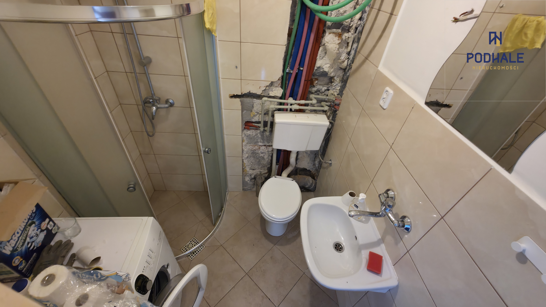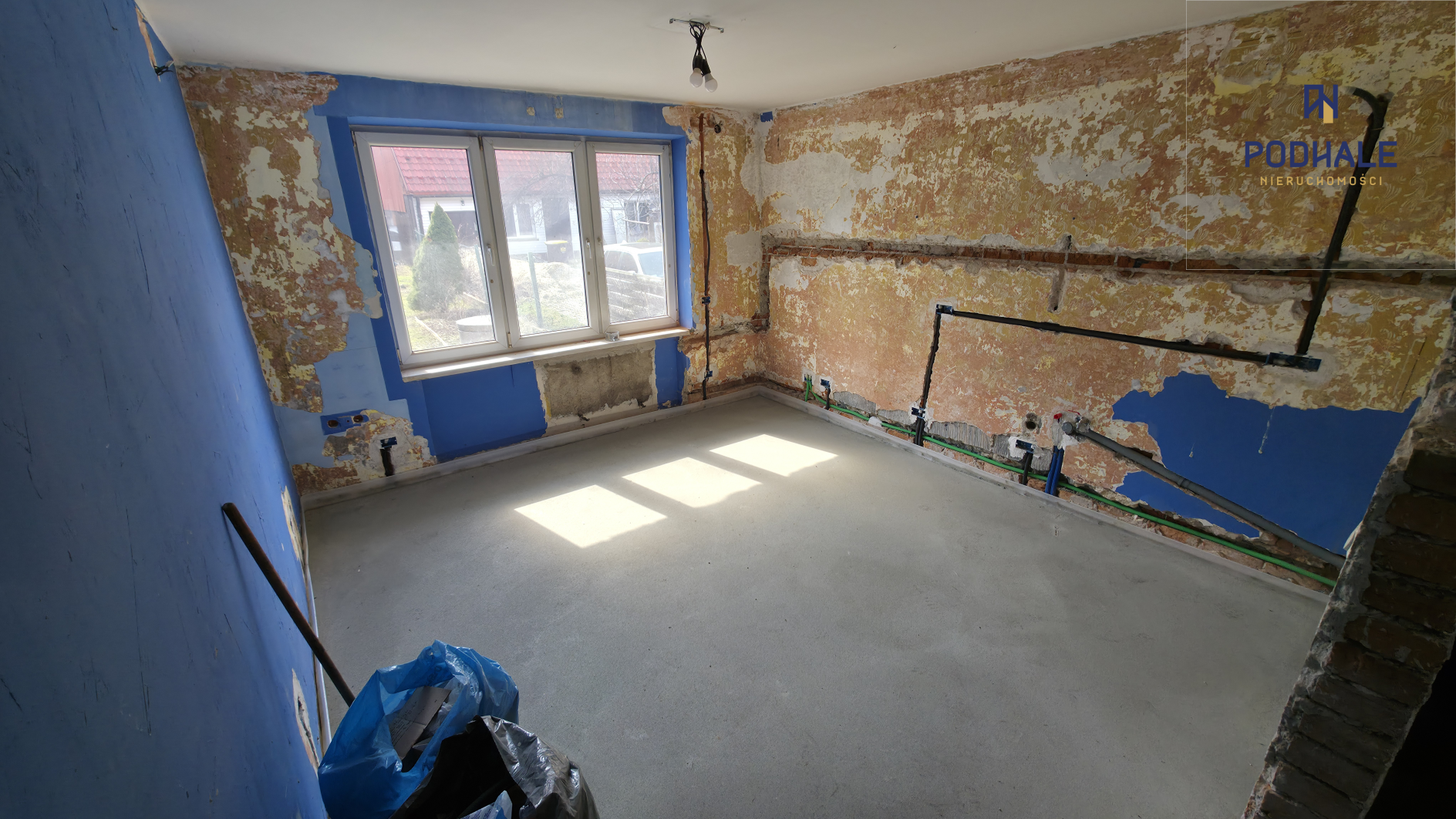 Po wejściu do budynku znajdujemy się na obszernej klatce schodowej. Po prawej stronie znajdują się drzwi wejściowe do mieszkania na parterze. Przestrzeń na ten moment została otwarta i do zagospodarowania według własnego uznania. Na środku między dwoma pokojami zaplanowana została łazienka. Na piętrze rozpoczęta została wymiana instalacji hydraulicznej oraz elektrycznej. Grzejniki zmienione zostały na ogrzewanie podłogowe, na które położona została nowa wylewka. Pomieszczenia są jasne i dobrze doświetlone.