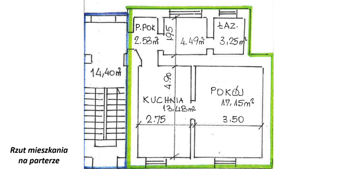Udział w częściach wspólnych – w tym w klatce schodowej i przestronnym strychu.